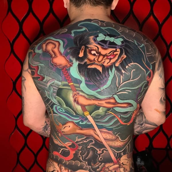 Hình xăm Nhật cổ (Irezumi) là một trong những phong cách xăm nổi tiếng và lâu đời nhất thế giới. Đặc trưng bởi các họa tiết rồng, cá chép, samurai, geisha, hoa anh đào, sóng nước… mang đậm chất văn hóa Nhật Bản. Thường được thực hiện với diện tích lớn như full tay, lưng hoặc ngực, hình xăm Nhật cổ không chỉ mang tính nghệ thuật cao mà còn gắn liền với triết lý nhân sinh: sức mạnh, lòng trung thành, sự bảo vệ và vẻ đẹp tinh thần. Đây là phong cách đòi hỏi kỹ thuật cao, tỉ mỉ và nhiều thời gian thực hiện.